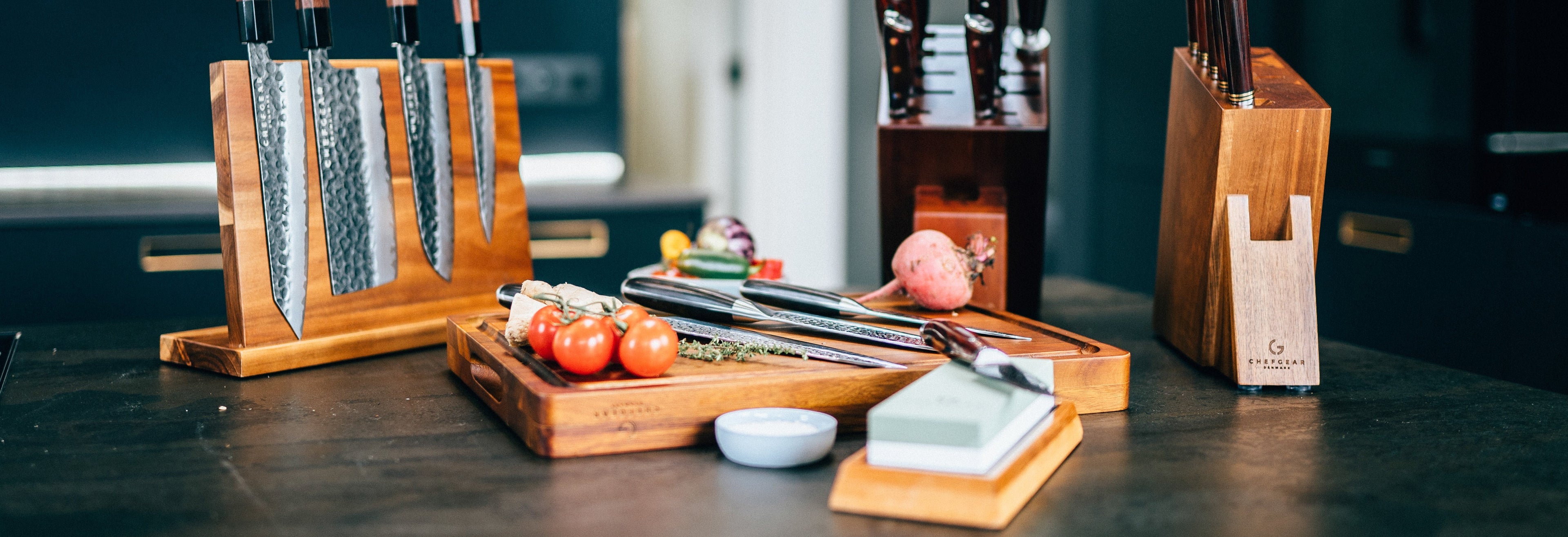 Den lille knivholder der er lavet i det mørke akacietræ, er både smukt af udseende, men også ekstremt holdbart og robust eftersom akacietræet har tværgående sammenlåsende korn. Med denne knivholder har du plads til fem knive samt en saks eller lignende.
