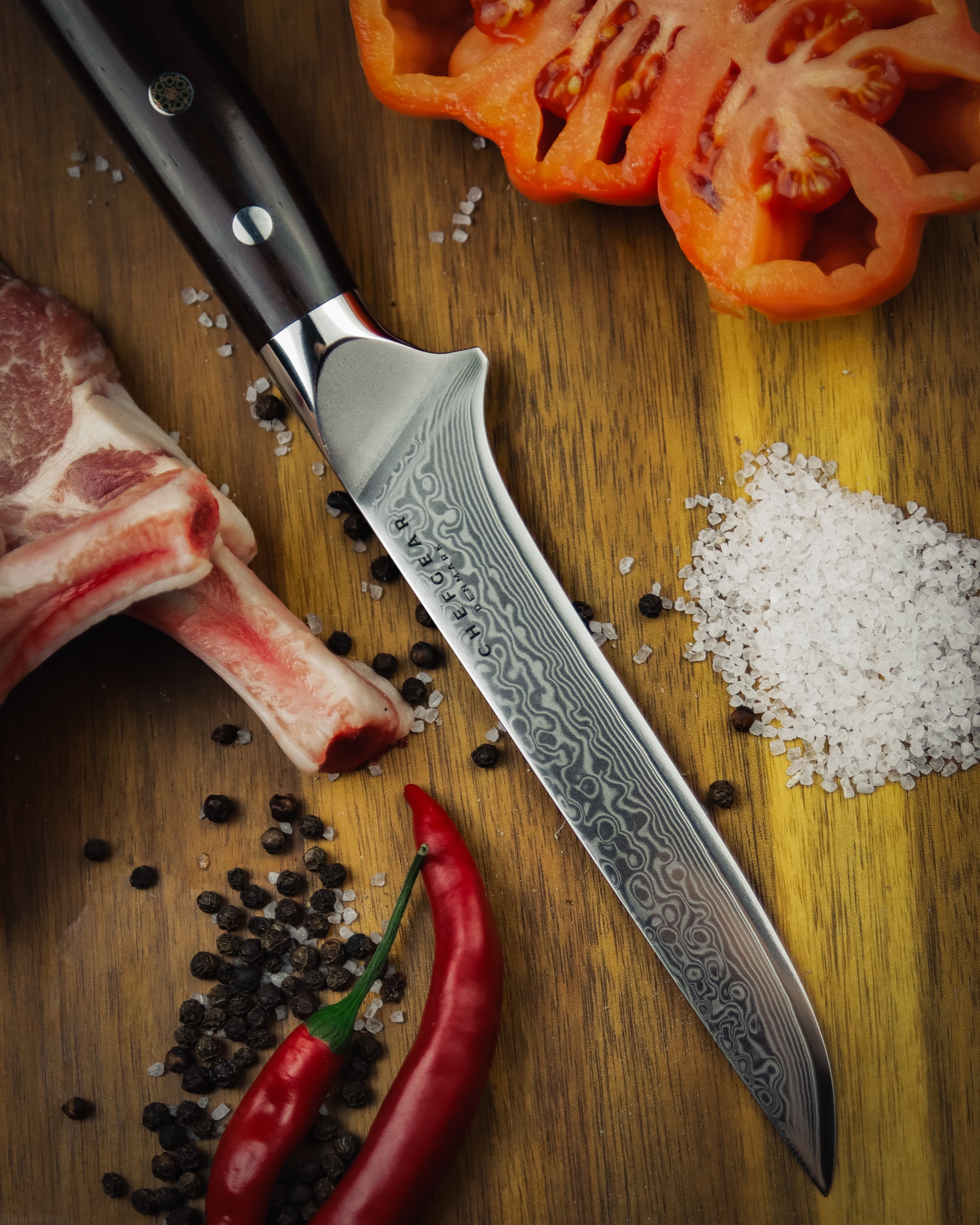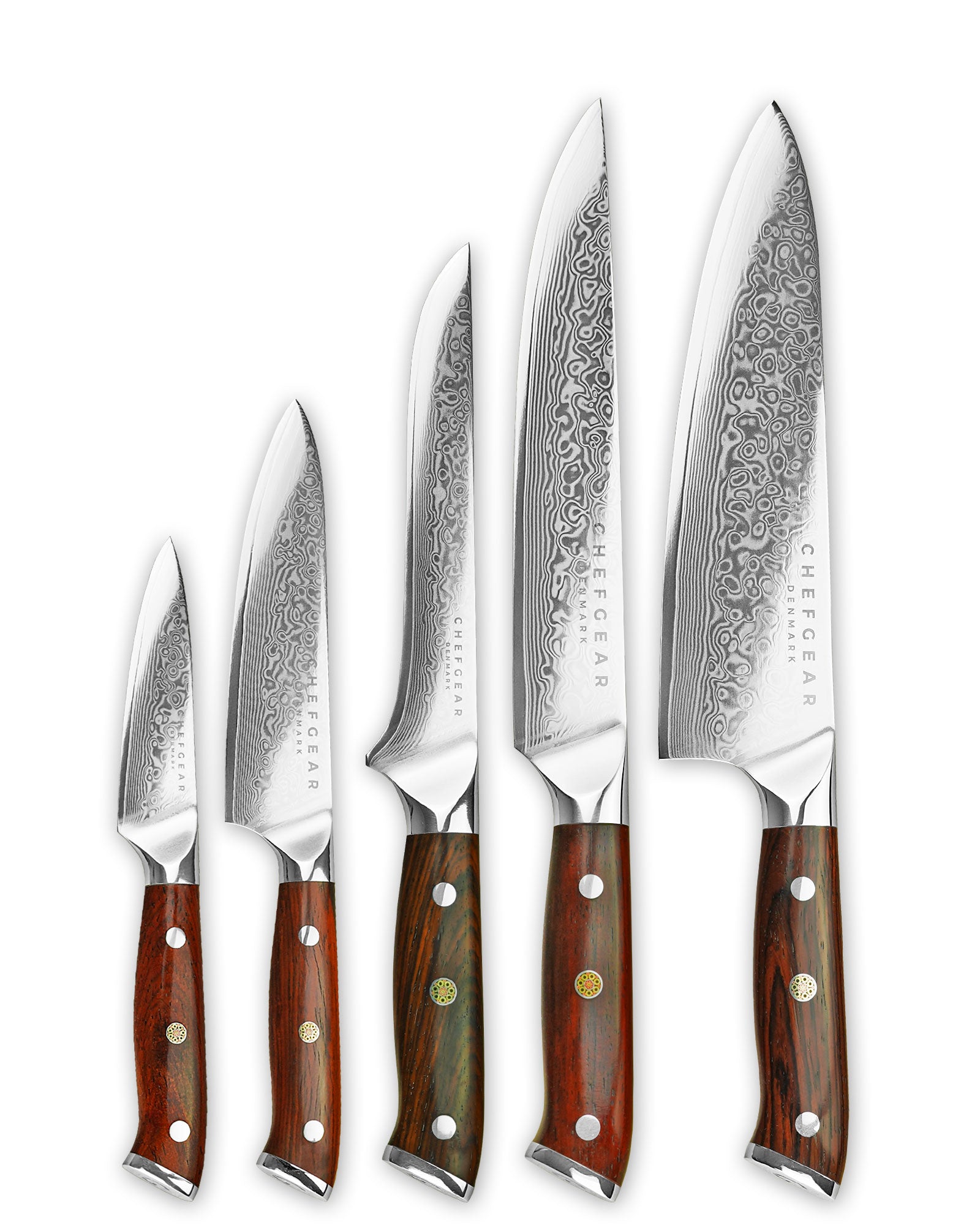 - Sæt: 1 x Kokkekniv, 1 x Forskærerkniv, 1 x Udbenerkniv, 1 x Utilitykniv og 1 x Urtekniv